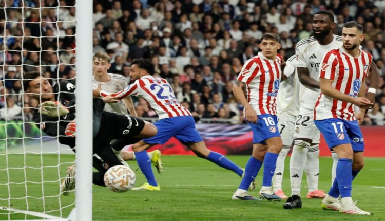 وأنهى ريال ديربي العاصمة بعشرة لاعبين بعد طرد فالفيردي لركله لاعب الوسط البديل لأتلتيكو أليكس بايينا .