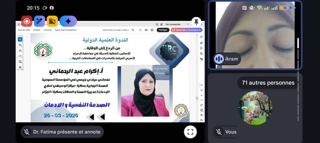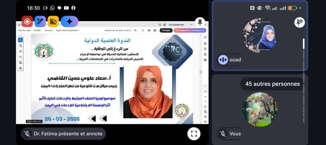 هذا ويذكر أن الندوة شهدت نقاشات علمية موسعة بين المشاركين، وأكدت أهمية تكامل الأبعاد القانونية والنفسية والاجتماعية في معالجة ظاهرة الإدمان، وضرورة تبني استراتيجيات وقائية حديثة قائمة على المعرفة والبحث العلمي.