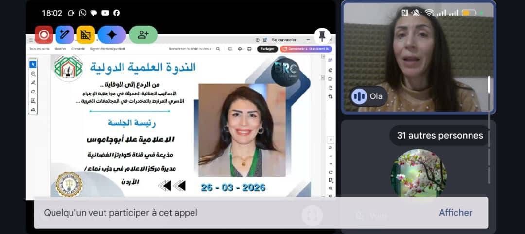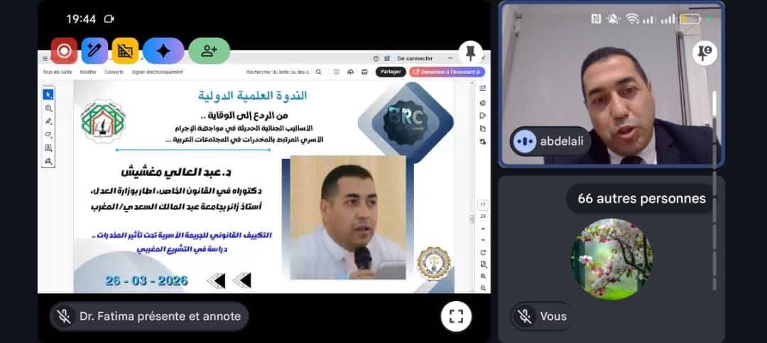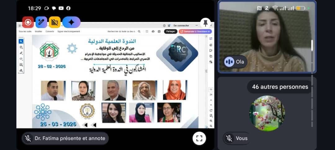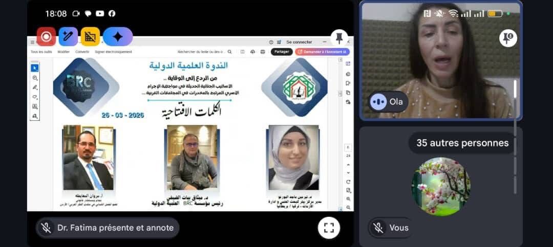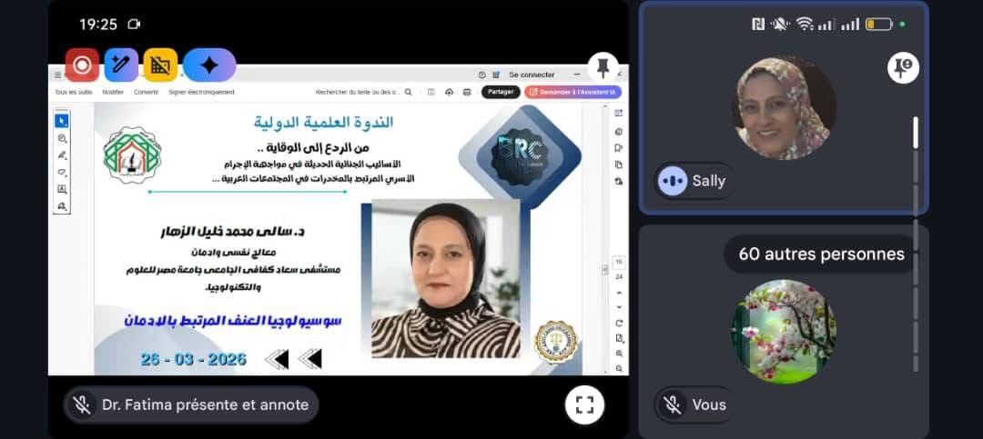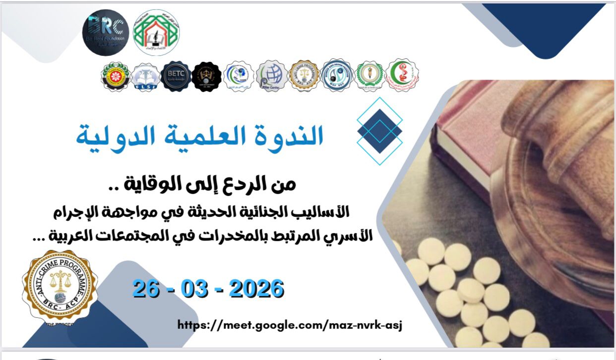 جاء ذلك خلال ندوة علمية دولية افتراضية عقدتها مؤسسة BRC العلمية الدولية وبالشراكة مع منتدى الفكر العربي ، وبالتعاون مع عدد من المؤسسات والجامعات العربية والدولية. تحت عنوان: “من الردع إلى الوقاية: الأساليب الجنائية الحديثة في مواجهة الإجرام الأسري المرتبط بالمخدرات في المجتمعات العربية”، بمشاركة نخبة من الأكاديميين والخبراء من عدد من الدول العربية.
