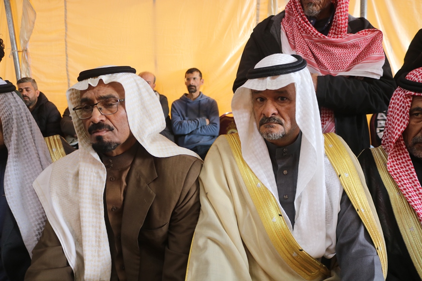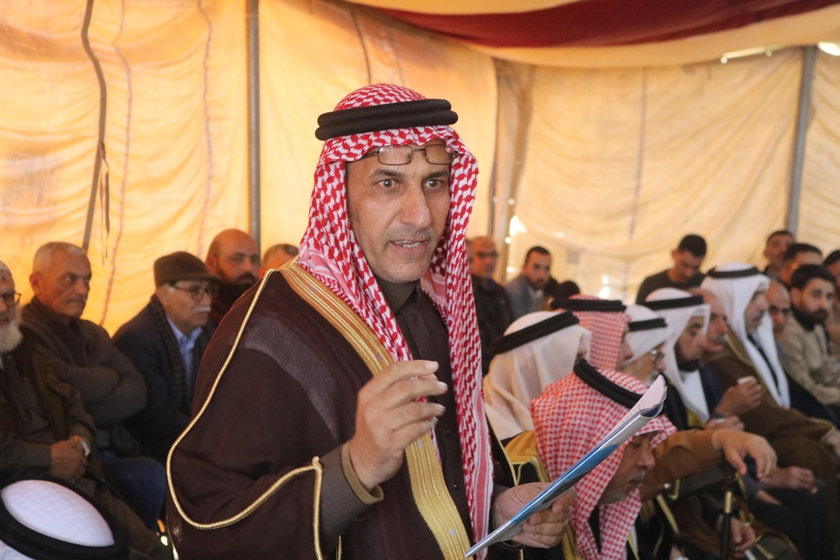 المتحدث باسم المستقبلين الشيخ سالم الدواهيك ابو عماد عن عشيرة الدواهيك والمتحدث باسم الجاهة عن آل الكسواني الشيخ خالد العموش ابو سفاح