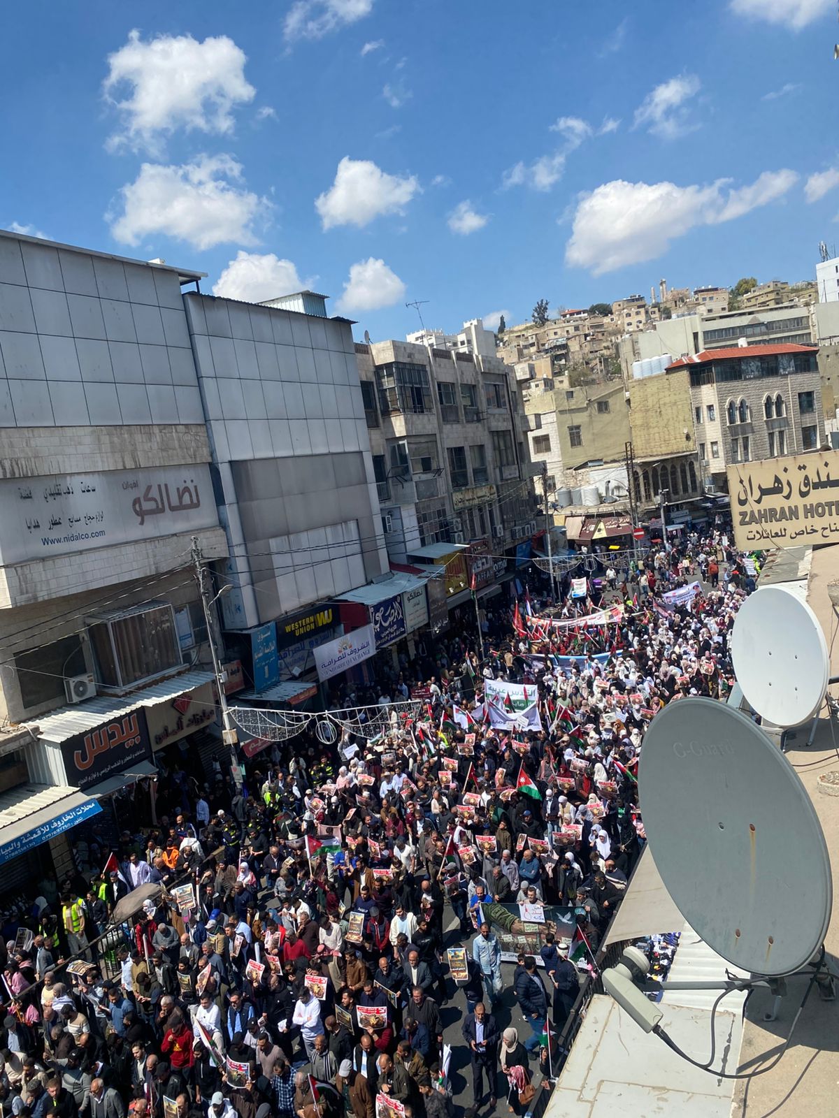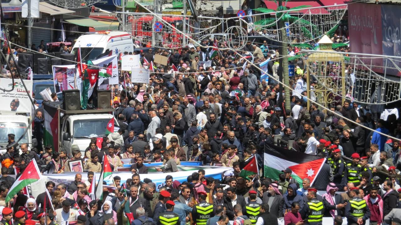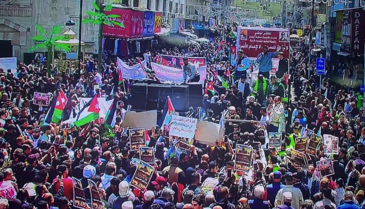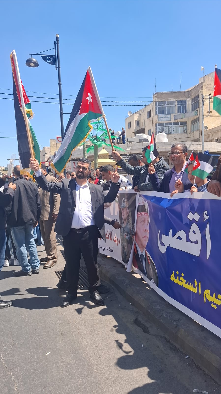 انطلقت بعد صلاة الجمعة اليوم من أمام المسجد الحسيني مسيرة نظّمتها أحزاب ونقابات أردنية، تأكيدًا على الموقف الأردني الثابت والراسخ، قيادةً وشعبًا، في الدفاع عن الوصاية الهاشمية على المقدسات الإسلامية والمسيحية في القدس.