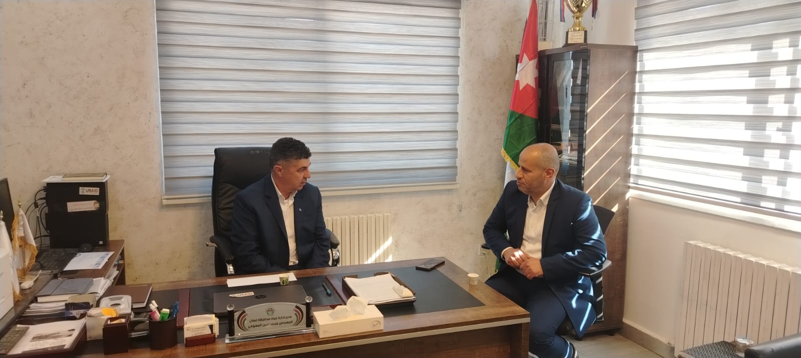 ففي محافظة معان، التقى الدويري مدير إدارة عقد مياه معان المهندس محمد العسوفي، حيث استمع إلى إيجاز حول الإجراءات المتخذة لضمان استمرارية التزويد المائي خلال فترة الطلب المرتفع، وخطط تعزيز كفاءة الشبكات وتحسين الأداء التشغيلي.