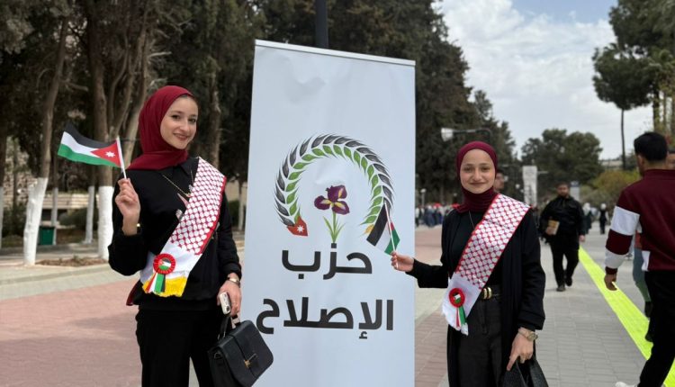 شباب حزب الإصلاح يوزعون العلم الأردني في الجامعة الأردنية احتفاء بيوم العلم