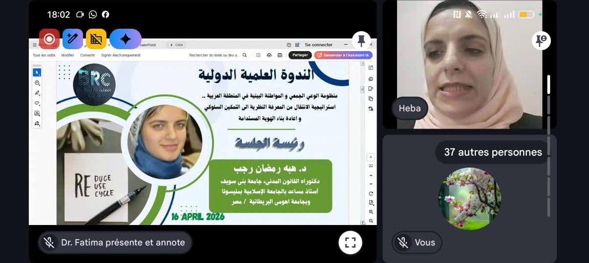 وقد عكست كلمات الافتتاح إجماعًا علميًا وقانونيًا على أهمية الانتقال من المعرفة النظرية إلى التمكين السلوكي، وتعزيز التكامل بين المؤسسات الأكاديمية والبحثية، بما يخدم قضايا البيئة والتنمية المستدامة في المنطقة العربية.