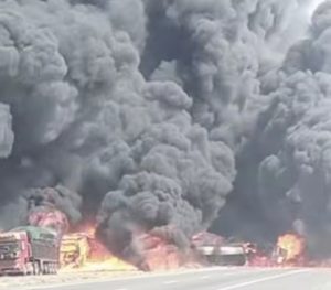 الأمن العام: حريق صهريج إثر تصادم مع شاحنتين على الطريق الصحراوي في السواقة.. فيديو