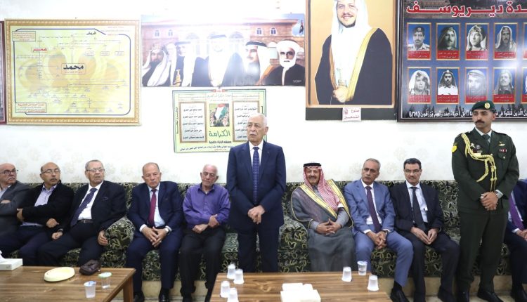 ونقل العيسوي، *خلال زيارته بيت عزاء المرحوم في منطقة دير يوسف بلواء المزار الشمالي بمحافظة إربد*، تعازي ومواساة جلالة الملك وسمو ولي العهد، إلى ذوي الفقيد وعموم عشيرة العمري، سائلا المولى عز وجل أن يتغمده بواسع رحمته.