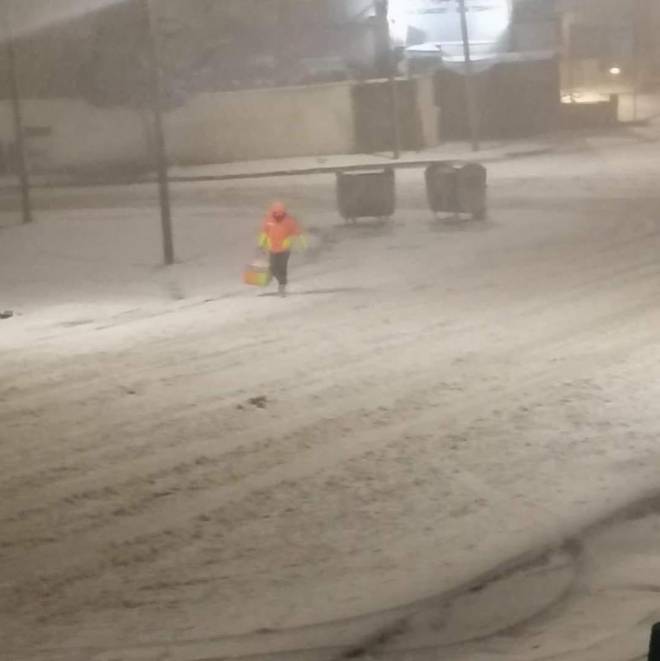 تداول ناشطون عبر مواقع التواصل الاجتماعي صورا تظهر عامل التوصيل، يقوم بعمله أثناء المنخفض الطبي الذي أثر على الأردن وتراكم الثلوج.