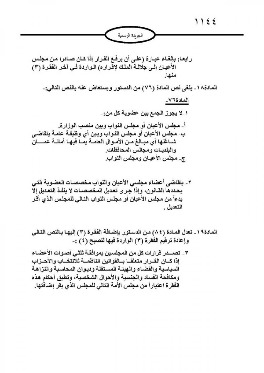 أخبار محليةعناوين رئيسية التعديلات الدستورية تدخل حيز التنفيذ في فبراير 1, 2022 شارك الشعب نيوز:- صادق الملك عبدالله الثاني ابن الحسين على تعديل الدستور الأردني لسنة 2022 ودخل تعديل الدستور حيز التنفيذ بعد صدوره في الجريدة الرسمية لرئاسة الوزراء الاثنين شارك FacebookTwitterGoogle+ReddItWhatsAppPinterestالبريد الإلكتروني