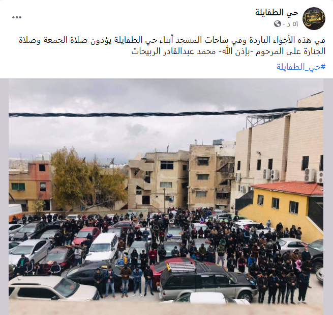 أبناء حي الطفايلة يصلون الجمعة وصلاة الجنازة في ساحة أحد المساجد