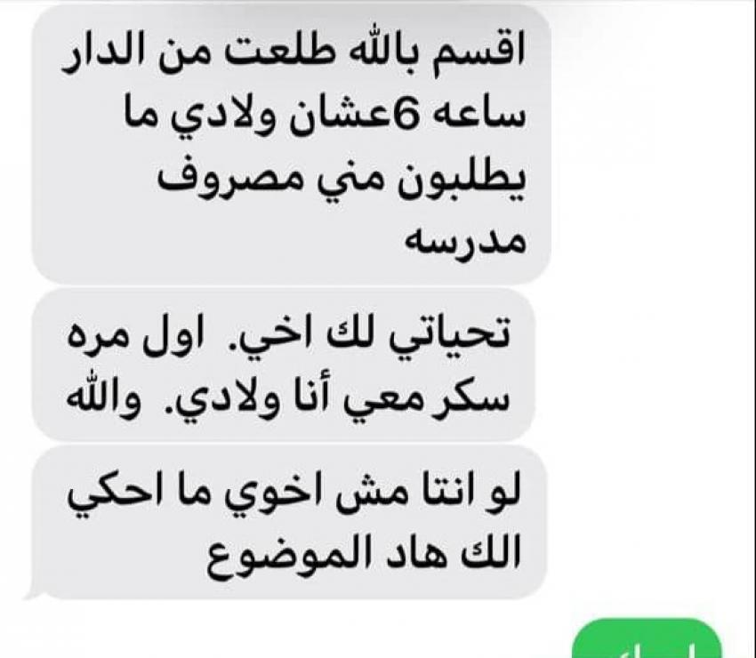 وكتب المواطن في الرسالة التي نشرها الظهراوي عبر فيسبوك، “أقسم بالله طلعت من الدار الساعة 6 عشان ولادي ما يطلبون مني مصروف مدرسة”.