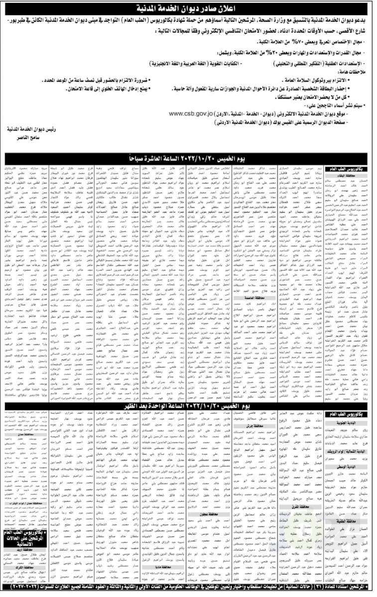 دعا ديوان الخدمة المدنية بالتنسيق مع وزارة الصحة، المئات من حملة بكالوريوس الطب العام إلى التواجد في مبنى الديوان؛ لإجراء الامتحان التنافسي.