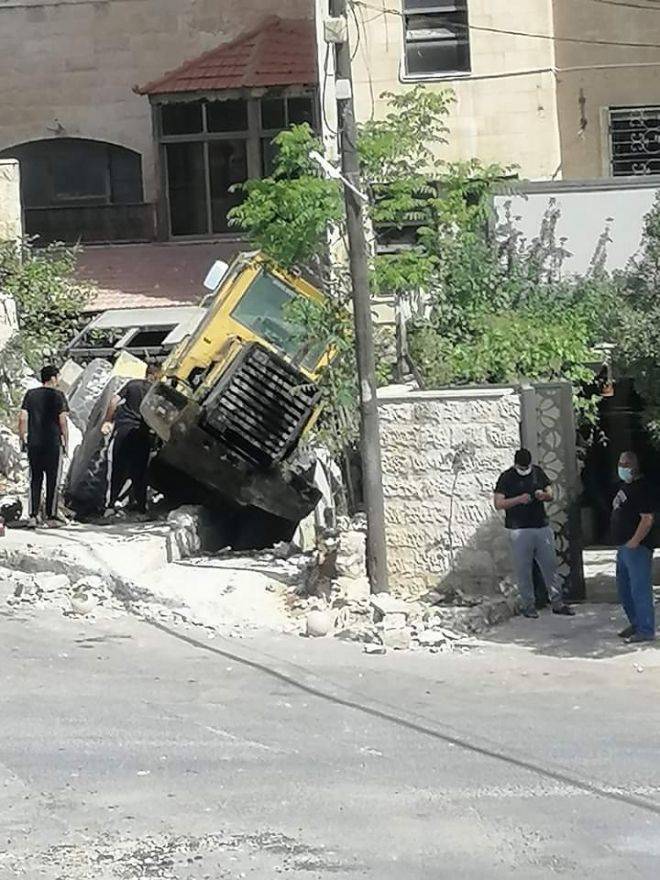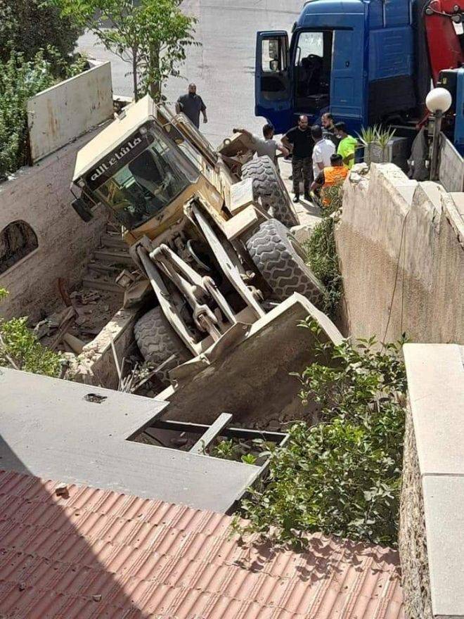 وقال شهود عيان أن انقلاب جرافة داخل أحد المنارل وقع في منطقة الجبل الروسي – طبربور دون وقوع اصابات واقتصرت على الأضرار المادية.