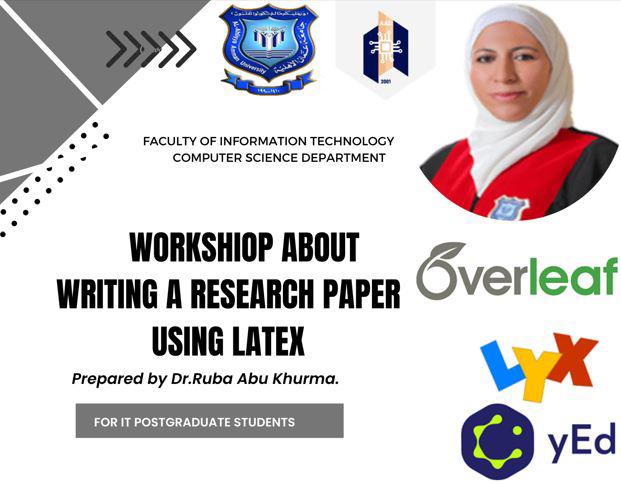 قامت الدكتورة ربى أبو خرمة من كلية تقنية المعلومات بجامعة عمان الاهلية بعقد ورشة عمل عن بعد لطلبة الدراسات العليا (الماجستير) في الكلية بخصوص كتابة البحث العلمي باستخدام لاتيكس .