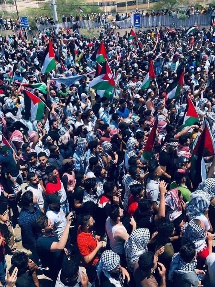 زحف آلاف الأردنيين، الجمعة، نحو الحدود الأردنية الفلسطينية، وذلك لدعم الشعب الفلسطيني