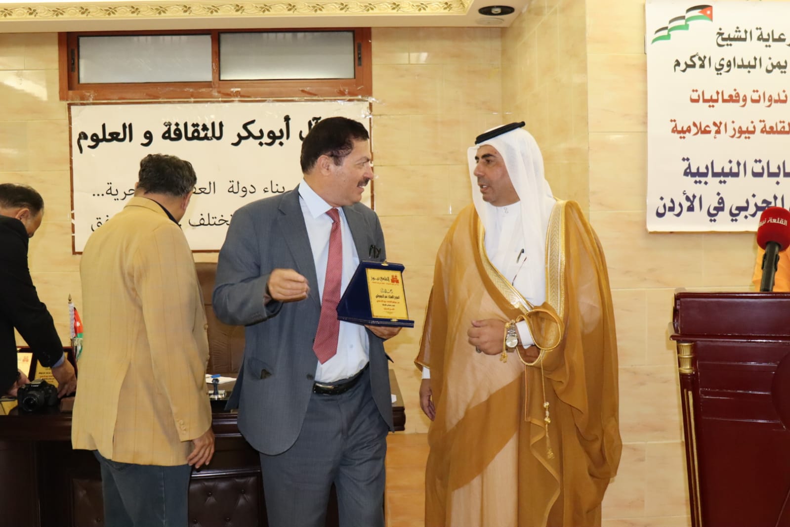 وحيّا الشيخ البداوي الأجهزة الأمنية المختلفة على جهودها في حفظ أمن الوطن ومواطنيه ، وحماية حدودنا كافة ، معربا عن الأمل بأن ينظر المواطن بإيجابية للمرحلة القادمة من خلال التحديث والتطوير في العملية السياسية التي تحظى برعاية كريمة من جلالة الملك شخصيا ، والذي هو ضامن لمسيرة الوطن الخيرة في كل المجالات .