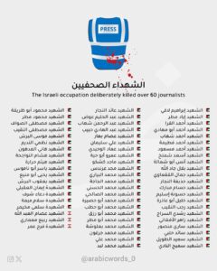 نحو 70 صحافيا وصحافية، إعلاميا وإعلامية فلسطينيين ولبنانيين قتلتهم آلة البطش العدوانية منذ بدء العدوان المسعور على قطاع غزة، هذا غير أهاليهم وعائلاتهم، بعضهم غادروا هذه الدنيا عائلات بأكملها..