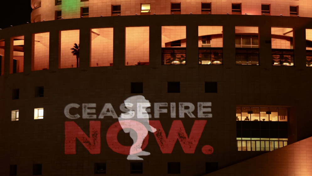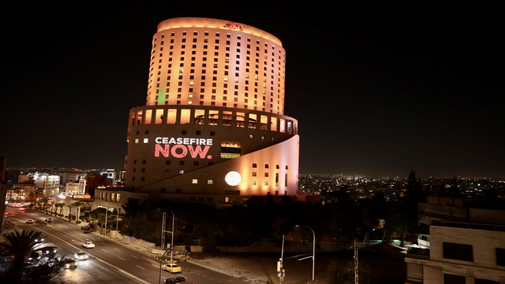 إضاءة واجهة فندق في عمّان للمطالبة بوقف إطلاق النار في غزة -صور